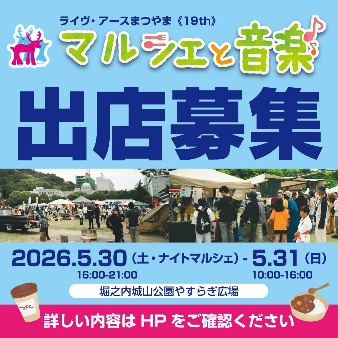 ライヴ・アースまつやま2026 アースマルシェのお申込みはこちらです。 『出店お申込み』 お待ちしております♪...続きを読む >
